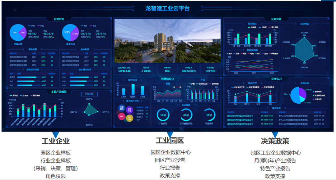 通過龍智造工業云平臺,大足高新區同步實現園區、企業、服務三方互聯,運用工業互聯技術,促進產業升級、園區管理升級、園區配套升級,形成協同、共享、高效的生態服務體系。