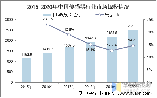 傳感器作為工業互聯網行業最重要的上游元器件之一,是工業互聯網感知外界的橋梁。隨著社會的不斷進步,傳感器產業日益受到重視,其市場規模不斷擴大。資料顯示,2020年,我國傳感器行業市場規模為2510.3億元,同比增長14.7%。