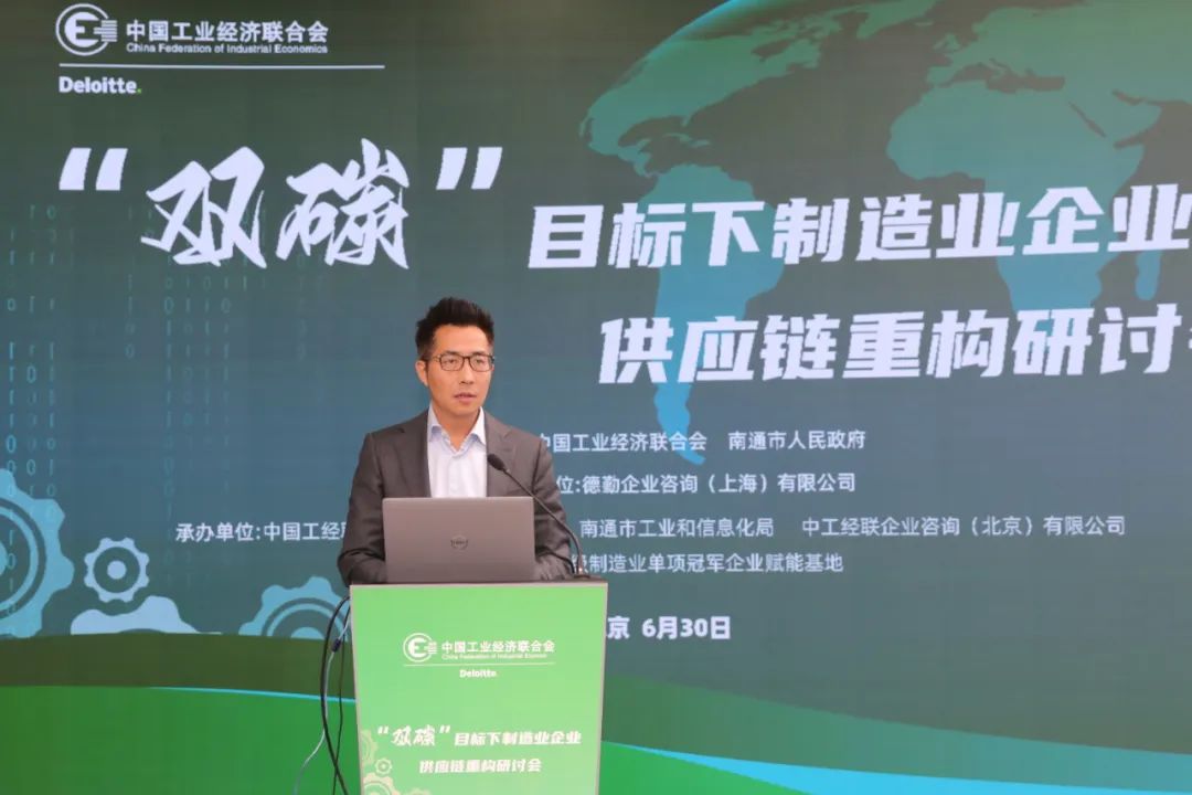 6月30日,“‘雙碳’目標(biāo)下制造業(yè)企業(yè)供應(yīng)鏈重構(gòu)研討會(huì)”以線上線下相結(jié)合的形式在京召開(kāi)。會(huì)議面向全國(guó)制造業(yè)單項(xiàng)冠軍企業(yè)、專精特新“小巨人”企業(yè)以及南通市制造業(yè)單項(xiàng)冠軍企業(yè)賦能基地全體企業(yè),圍繞可持續(xù)發(fā)展政策和供應(yīng)鏈重構(gòu)等方面進(jìn)行深度交流,普及相關(guān)政策、分享服務(wù)案例,幫助企業(yè)提早布局。