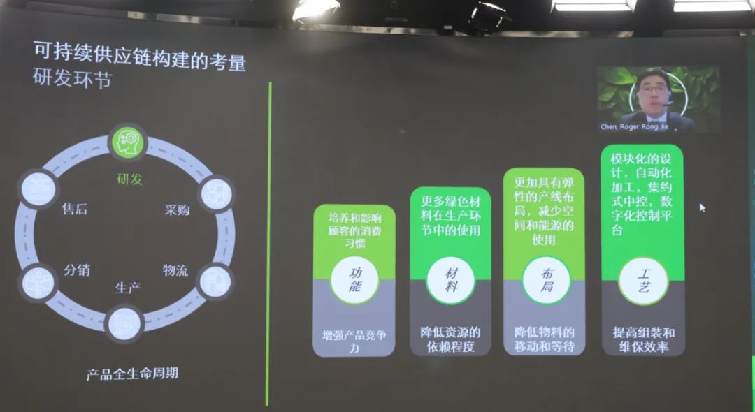 陳榮杰圍繞企業(yè)供應(yīng)鏈發(fā)展面臨的挑戰(zhàn)與可持續(xù)供應(yīng)鏈重構(gòu)的考量?jī)蓚€(gè)方面發(fā)表了演講。他指出,行業(yè)內(nèi)大型企業(yè)需要加大對(duì)政策法規(guī)的研究,及時(shí)調(diào)整組織戰(zhàn)略,承諾可持續(xù)發(fā)展的行動(dòng)目標(biāo),與供應(yīng)鏈上下游保持積極合作,運(yùn)用數(shù)字化手段提升供應(yīng)鏈的可視化,促進(jìn)產(chǎn)品和服務(wù)的全生命周期減排。行業(yè)內(nèi)中等規(guī)模企業(yè)需未雨綢繆,及時(shí)吸納有“雙碳”相關(guān)背景知識(shí)的專業(yè)人員,提升自身企業(yè)的能源管理效率,進(jìn)而引導(dǎo)供應(yīng)商規(guī)范排放。小型孵化類企業(yè)目前受影響最小,但從長(zhǎng)遠(yuǎn)來(lái)看,應(yīng)及時(shí)發(fā)揮“船小掉頭快”的優(yōu)勢(shì),順勢(shì)進(jìn)入新能源、新材料、新技術(shù)等領(lǐng)域,搭上“雙碳”發(fā)展的快車道。