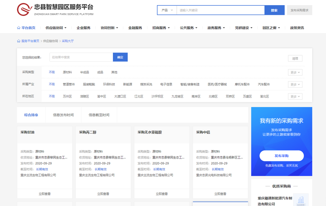忠縣智慧園區(qū)服務(wù)平臺圍繞企業(yè)發(fā)展所需的四大產(chǎn)業(yè)鏈條來進(jìn)行內(nèi)容的深度運(yùn)營及分析匹配;所以在服務(wù)平臺的內(nèi)容運(yùn)營上,本季度依舊圍繞著平臺核心功能版塊進(jìn)行信息內(nèi)容的補(bǔ)充及優(yōu)化。