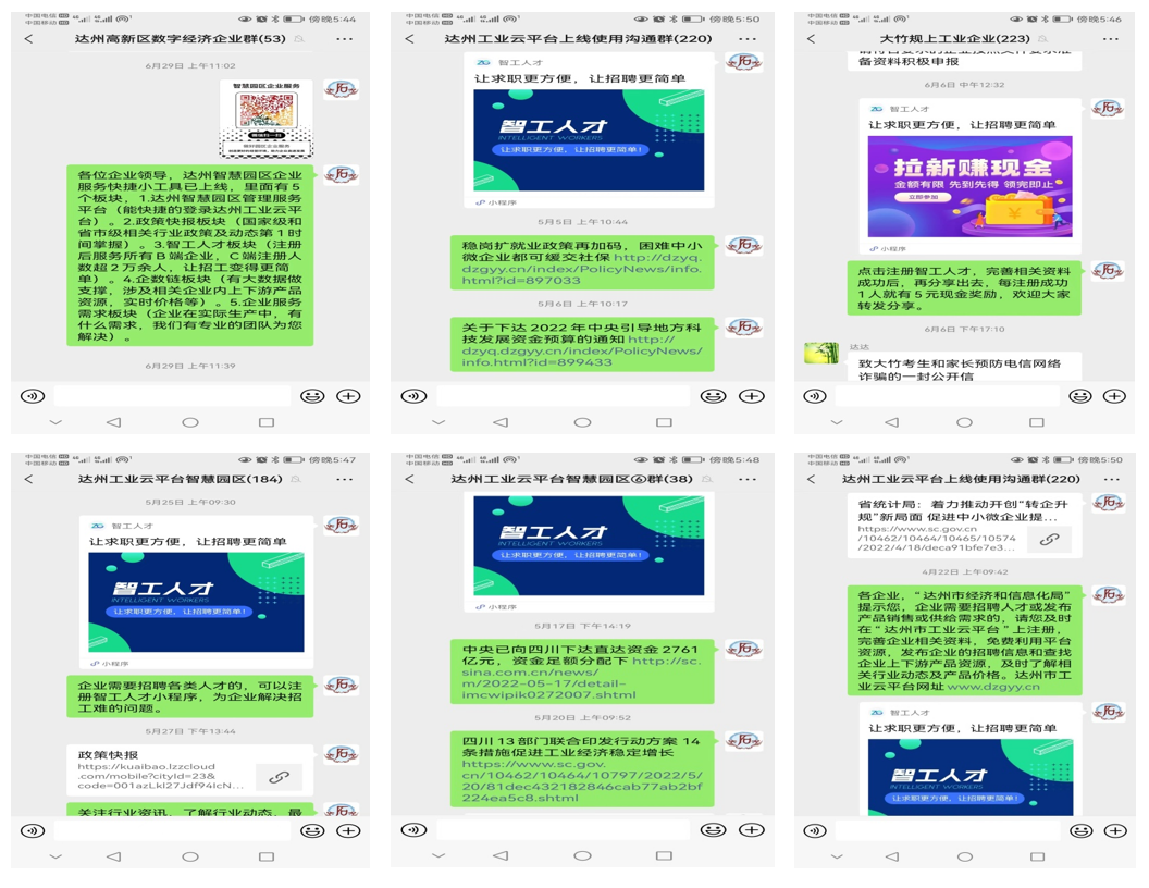 2022年6月7日,公司把智工人才小程序和達州工業云平臺的藍領直招平臺以及智工人才和達州工業云平臺注冊企業的數據連通,減少了企業的繁瑣注冊,一鍵注冊后,兩個平臺通用,給企業減少工作環節提高了運行效率。