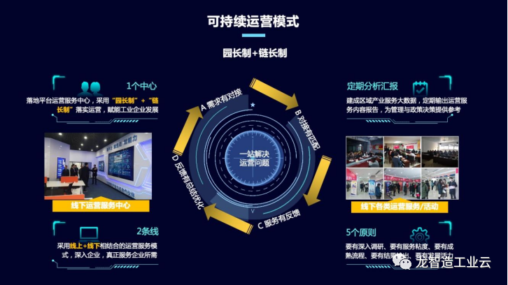 為將工業(yè)互聯(lián)網(wǎng)平臺在園區(qū)及企業(yè)的服務(wù)做強、做實、做深,龍智造采取創(chuàng)新的“園長制”+“鏈長制”網(wǎng)格化平臺運營模式,通過建設(shè)園區(qū)運營服務(wù)中心,線上線下雙向推進平臺服務(wù)落地,切實打通平臺落地“最后一公里”。