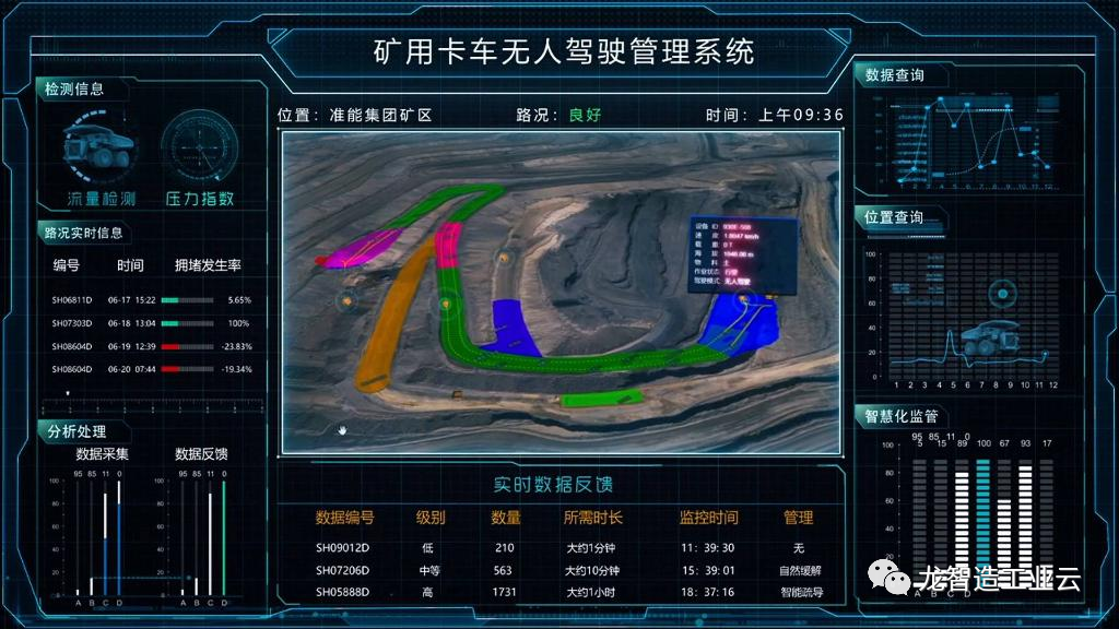 黑岱溝露天煤礦目前已實現無人駕駛卡車“裝、運、卸”全流程完全無人自主運行,建成2個智能采剝工作面,實現18臺無人駕駛卡車配合2臺電鏟進行雙編組重載作業。