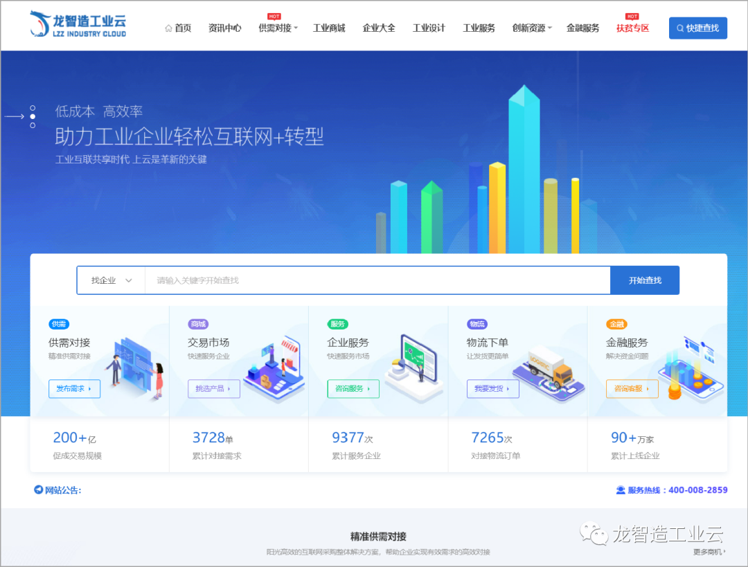 龍智造工業云平臺以互通互聯,協同共享為理念;以工業互聯網產業生態為基礎;以全國工業園區為載體,構建企業全生命周期的云服務體系,打造工業園區智慧化平臺,助力工業中小企業上云。