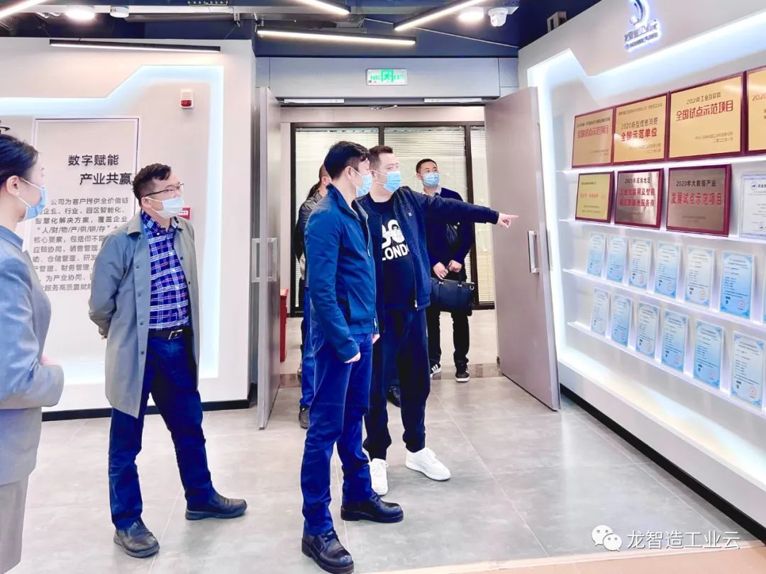 參觀過程中,董事長胡金彪從市場背景、平臺概況、商業價值等多個維度對龍智造旗下全鏈條品牌資源進行詳細講解,并重點介紹龍智造人才大數據服務平臺“智工人才”在為企業人才服務方面取得的成績。