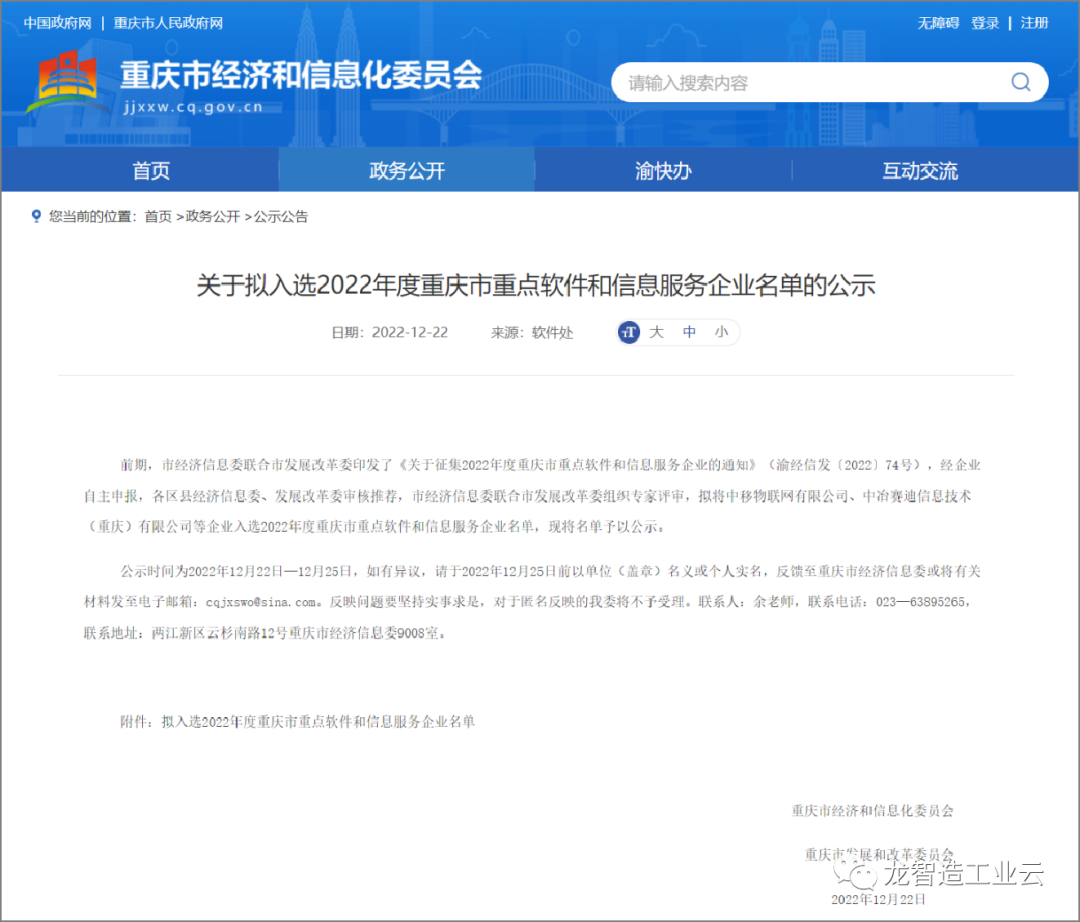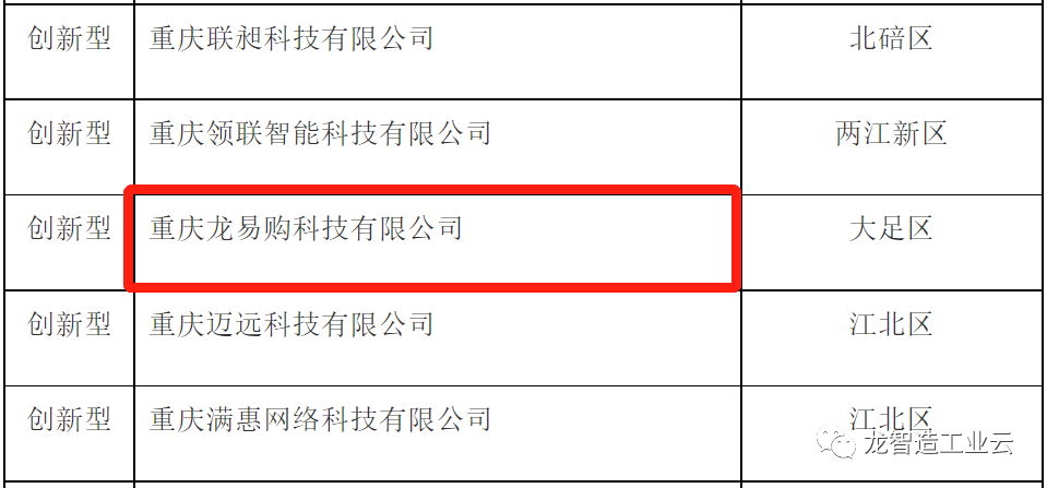 12月22日,重慶市經濟和信息委印發《關于擬入選2022年度重慶市重點軟件和信息服務企業名單的公示》,評選出了龍頭型、成長型、創新型三類重點軟件和信息技術服務企業,重慶龍易購科技有限責任公司獲評“創新型企業”榮譽企業之一。