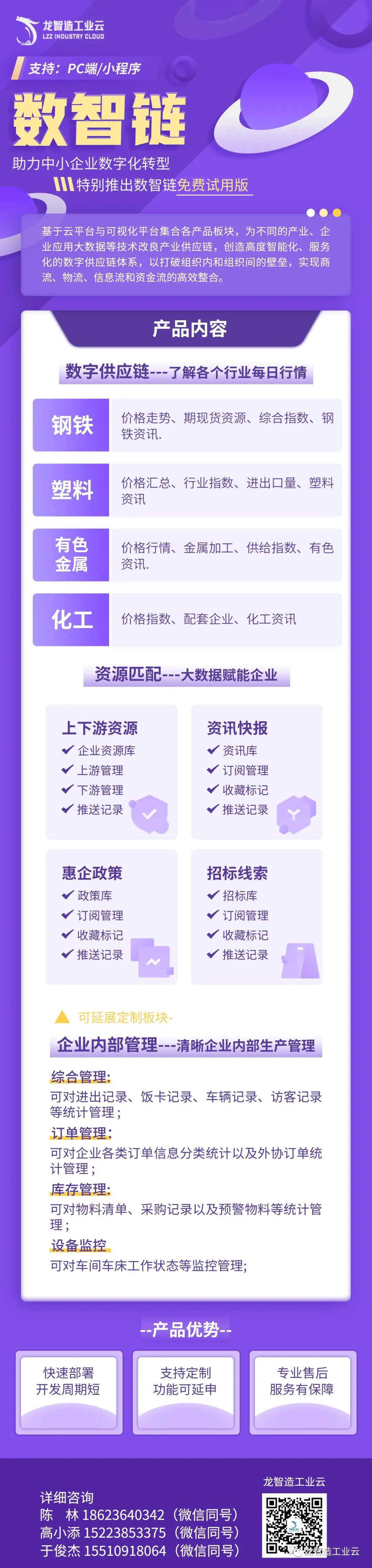 助力企業數字化,數智鏈已推出免費試用版,還未部署的企業抓緊時間,詳情歡迎來電咨詢
