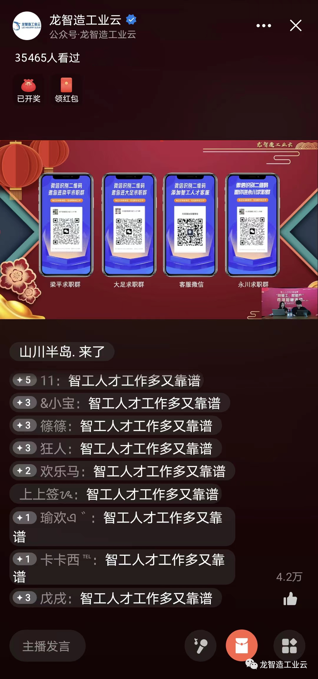 2月7日下午14:30,由重慶龍智造互聯網科技有限公司主辦的智工人才2023年春季“助復工,幫復產”主題招聘活動第二期直播招聘活動如期舉行!
