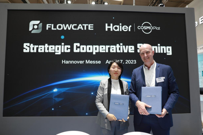 在本屆漢諾威展上,為了補充、完善平臺的賦能版圖和行業生態,卡奧斯COSMOPlat在現場分別與SEW、Flowcate、宏發、瑞能、移遠等中外國際企業簽訂戰略合作協議,帶動上平臺企業實現數字化轉型共贏。