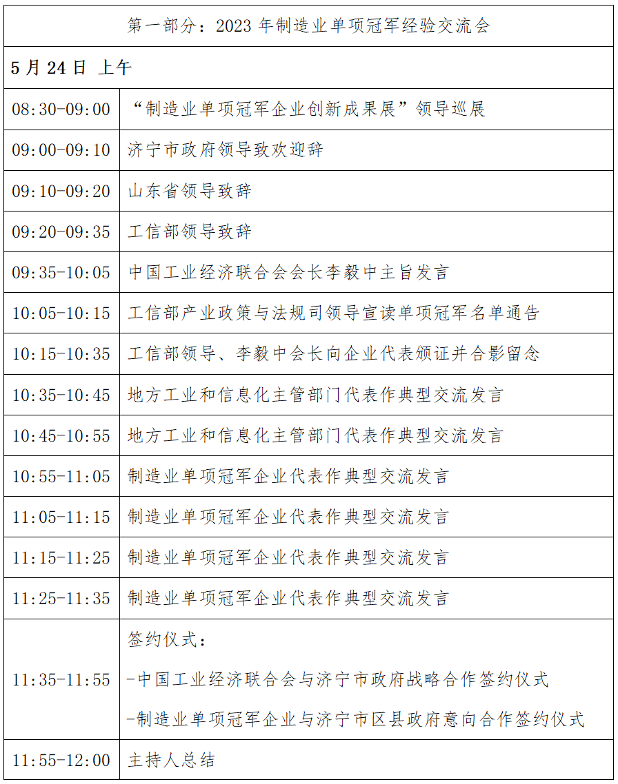 2023年制造業(yè)單項(xiàng)冠軍經(jīng)驗(yàn)交流會日程