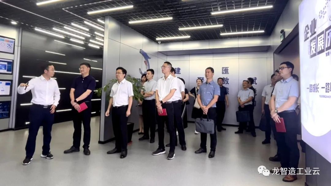 參觀過程中,領導一行深入了解龍智造如何通過“建平臺、聚生態、賦能力”的方式賦能產業升級,助推智慧園區建設,在工業互聯網經濟形勢的推動下,以產業園區為工業互聯網應用場景落地主戰場,幫助中小企業輕松、低成本實現數字化轉型,從而實現科技創新。
