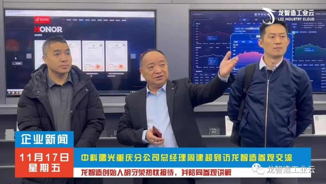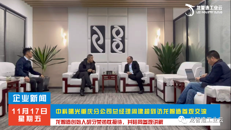 11月17日,中科曙光重慶分公司總經理周建超等一行到訪重慶龍智造互聯網科技有限公司參觀交流,龍智造創始人胡守榮熱忱接待,并陪同參觀講解。