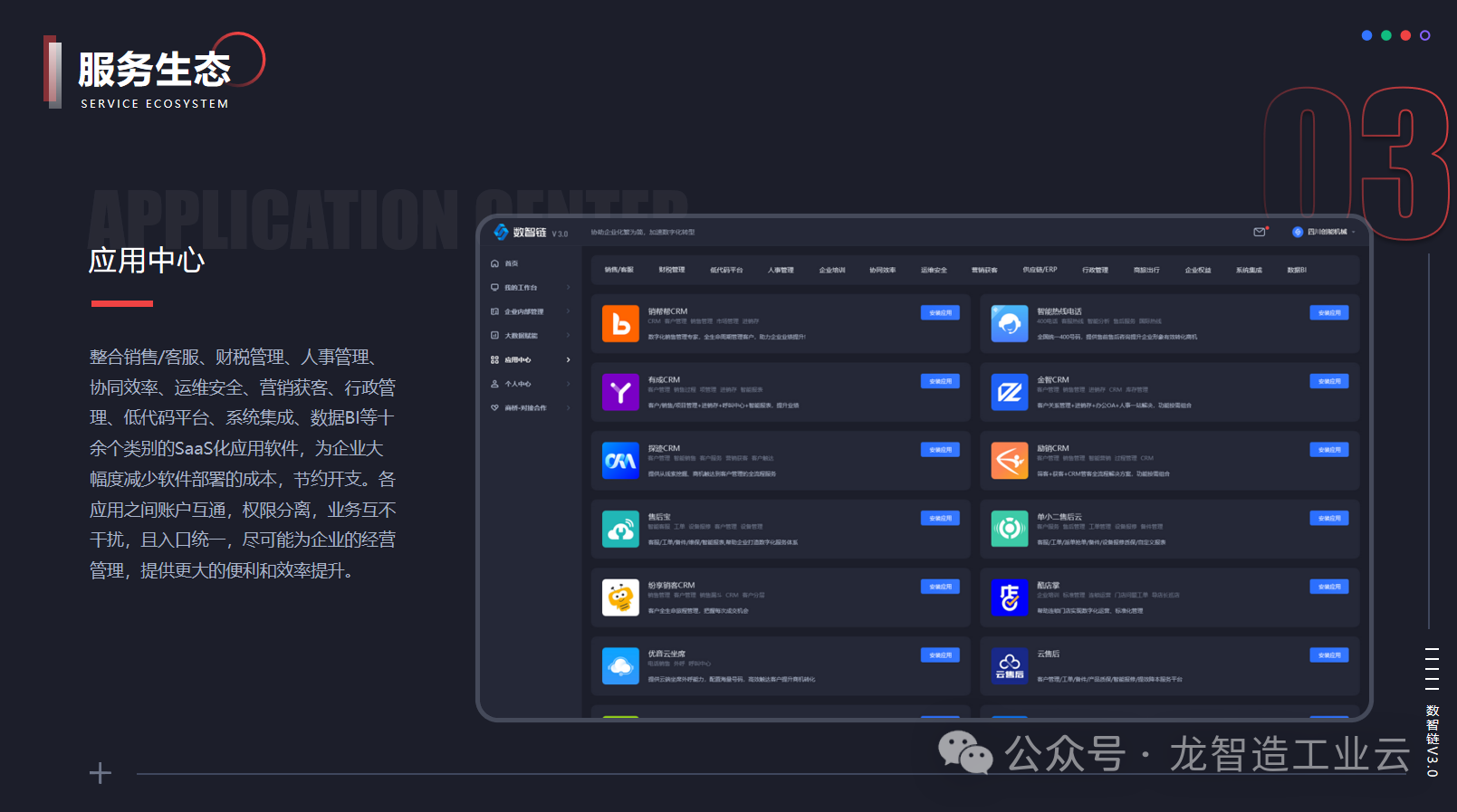 在企業(yè)發(fā)展過程中,面對(duì)日益復(fù)雜的挑戰(zhàn),單一的解決方案往往難以滿足多變的需求,尤其在數(shù)字化發(fā)展迅猛的當(dāng)下,重慶龍智造深諳此道,傾力打造數(shù)智鏈3.0,其服務(wù)生態(tài)(AppStore)板塊猶如一座數(shù)字化轉(zhuǎn)型的寶庫(kù),涵蓋了從銷售到數(shù)據(jù)BI的全方位服務(wù),旨在協(xié)助企業(yè)化繁為簡(jiǎn),加速邁向數(shù)字化未來。讓我們一同探索,這顆數(shù)字化轉(zhuǎn)型的明珠,如何為企業(yè)插上騰飛的翅膀。