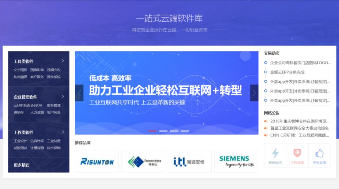 平臺與用友、浪潮等眾多SaaS級服務商達成戰(zhàn)略合作,匯集了海量工業(yè)軟件,如工具類、企業(yè)管理、工程類軟件等,為企業(yè)提供辦公協(xié)同、人事管理、行政管理等全方位軟件支持,幫助企業(yè)提升信息化管理水平。