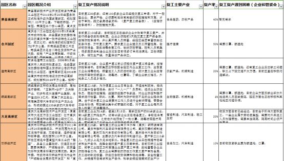從最新統計數據來看,全市48個園區有43個(占89.6%)開始逐步復工,其中,重慶經開區、豐都工業園區、長壽經開區、南川園區等9個園區復工率超過50%。企業復工復產困難問題主要集中在用工返崗困難(交通、隔離等原因)、配套物資運輸、生產防疫物資欠缺(口罩、額溫槍等)等問題(50%以上園區需求口罩)。