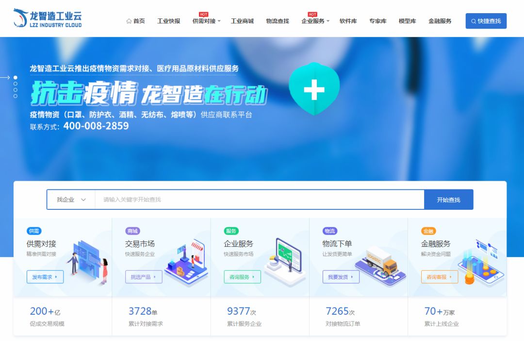 龍智造工業云疫情期間充分利用平臺大數據,整合資源鏈條、實現信息共享、幫助各園區企業疫情防護、復產復工。1月28日,平臺緊急成立20人專項抗疫服務保障小組,保持平臺客服電話坐席24小時遠程值班,所有采購信息5分鐘響應,15分鐘回訪反饋結果,幫助100余家企業對接額溫槍、口罩等防護需求;聯合平臺服務商開通貴州、云南等地招工通道,幫助企業定向招聘員工2700余人,著力緩解企業用工難問題;上線政策快報功能,整合國家、省市級、各區縣惠企政策800多條,推送給20多個園區3000余家企業并進行政策解讀,幫助企業精準對接扶持政策;聯合工商銀行、建設銀行、平安銀行、郵政儲蓄銀行等金融機構推出幫助中小企業復工復產的高效便捷融資產品,幫助企業解決資金流問題;平臺目前訪問量190000人次,共發布供應及求購信息1598條。
