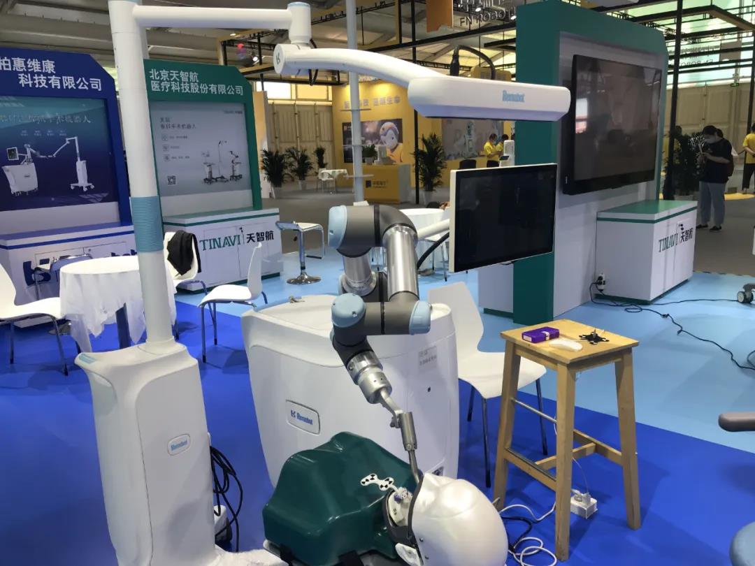 傳統(tǒng)的口腔種植手術,患者在手術前進行完CBCT掃描后,治療過程階段,全憑醫(yī)生經驗對患者進行手術規(guī)劃和操作。而展會現(xiàn)場,北京柏惠維康科技有限公司帶來的睿米手術機器人則提高了在種植牙手術中醫(yī)生操作的精準性。這是一款專門針對口腔種植手術導航定位系統(tǒng)的機器人。“這款產品分為‘腦眼手’三部分。”北京柏惠維康科技有限公司市場部經理袁旭君介紹,醫(yī)生術前導入病人的CBCT影像數據,制定種植方案,進行手術規(guī)劃。之后,機械臂進行注冊,使得物理空間和影像空間匹配;隨后,機器人進行自主定位,醫(yī)生通過力控的方式操作種植牙手術。如果手術過程中,患者不小心有位移,機器人還可實時追蹤,在手術過程中進行實時校準。
