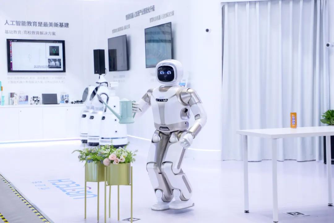 作為機器人界的“明星”,優(yōu)必選科技的大型仿人服務機器人Walker一經亮相便立刻成為焦點。Walker一出場就主動向觀眾招手問好,并展示了澆花、遞水、瑜伽和踢球等功能。據介紹,在澆花過程中,Walker先運用視覺伺服技術智能識別噴壺的位置、大小及形狀,然后規(guī)劃行動路線,走到噴壺前,用手臂精準抓住噴壺,最后識別花的位置進行澆花。同樣,Walker和觀眾踢球需要先用眼睛智能識別球和隊友的位置,抬起一只腳保持身體平衡,然后計算合適的力度完成踢球動作。