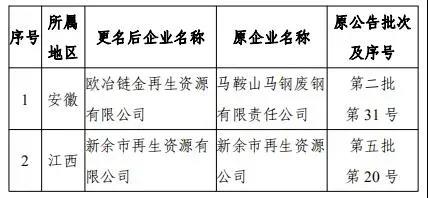 2.變更《廢鋼鐵加工行業準入條件》公告名稱的企業名單