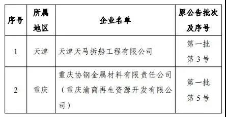 3.撤銷《廢鋼鐵加工行業準入條件》公告的企業名單
