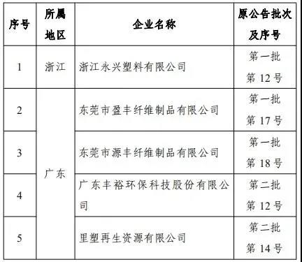 5.撤銷《廢塑料綜合利用行業規范條件》公告的企業名單