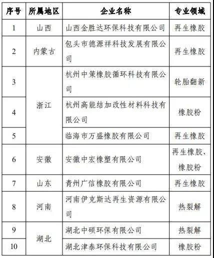 符合《廢舊輪胎綜合利用行業規范條件》企業名單(第一批)