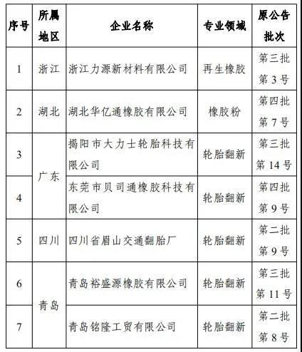 7.撤銷《輪胎翻新行業準入條件》《廢輪胎綜合利用行業準入條件》公告的企業名單