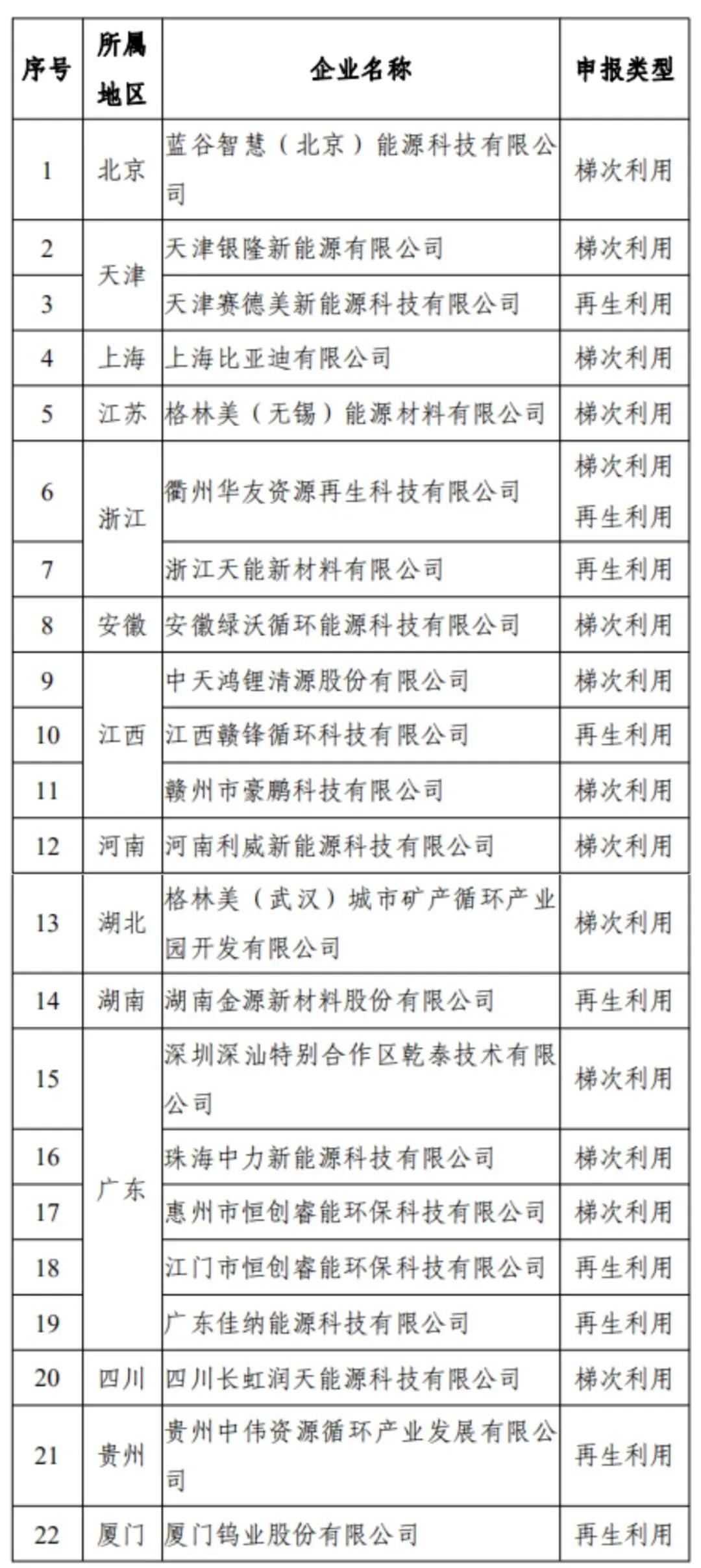 符合《新能源汽車廢舊動力蓄電池綜合利用行業規范條件》企業名單(第二批)