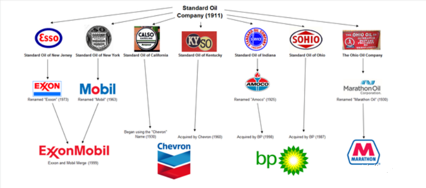 埃克森美孚和雪佛龍原是“一家人”。1911年由于美國反壟斷法,洛克菲勒創(chuàng)立的標準石油公司(Standard Oil Monegority)被分割后形成了三家較大的石油公司(新澤西標準,紐約標準,加利福尼亞標準)以及另外四家原有的石油公司。其中就包括美孚石油、埃克森石油和雪佛龍石油。