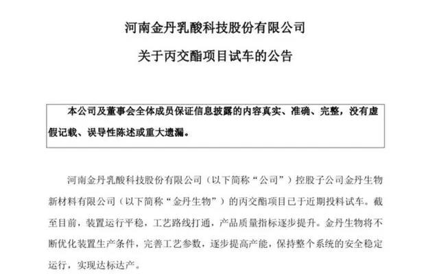 去年底,金丹科技控股子公司金丹生物的丙交酯項(xiàng)目投料試車。金丹科技是國內(nèi)乳酸領(lǐng)域的龍頭企業(yè),擁有12.8萬噸產(chǎn)能,占全國產(chǎn)能的42%,也是全球僅有的三家產(chǎn)能超過10萬噸的乳酸生產(chǎn)商之一。