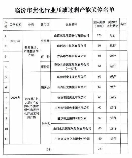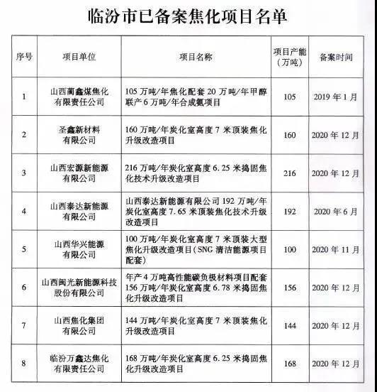 臨汾市提出壓減焦化產(chǎn)能720萬噸