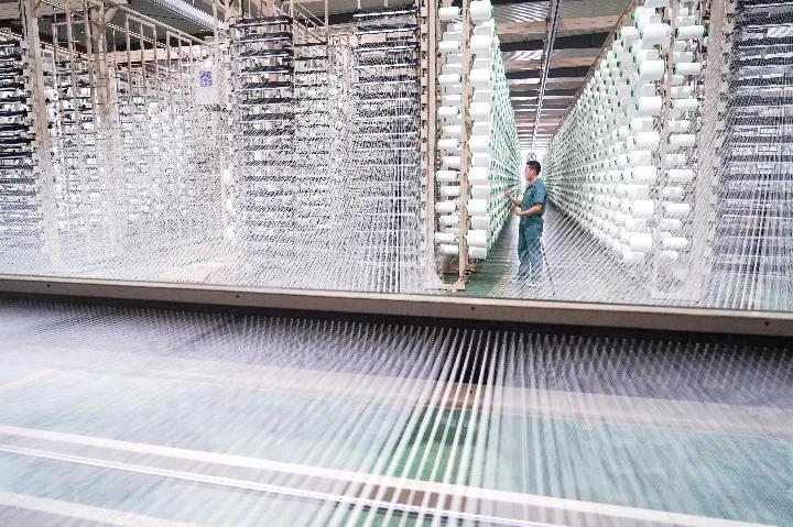 5月14日,工人在位于蘇州吳江區的一個紡織智能車間內作業