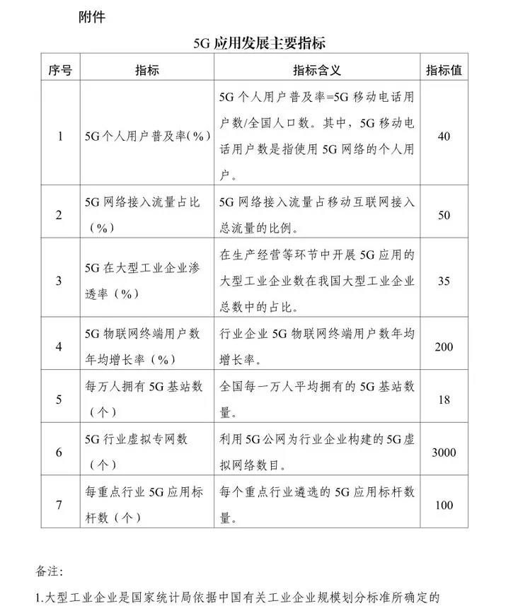 ——重點領域5G應用成效凸顯。個人消費領域,打造一批“5G+”新型消費的新業務、新模式、新業態,用戶獲得感顯著提升。垂直行業領域,大型工業企業的5G應用滲透率超過35%,電力、采礦等領域5G應用實現規模化復制推廣,5G+車聯網試點范圍進一步擴大,促進農業水利等傳統行業數字化轉型升級。社會民生領域,打造一批5G+智慧教育、5G+智慧醫療、5G+文化旅游樣板項目,5G+智慧城市建設水平進一步提升。每個重點行業打造100個以上5G應用標桿。