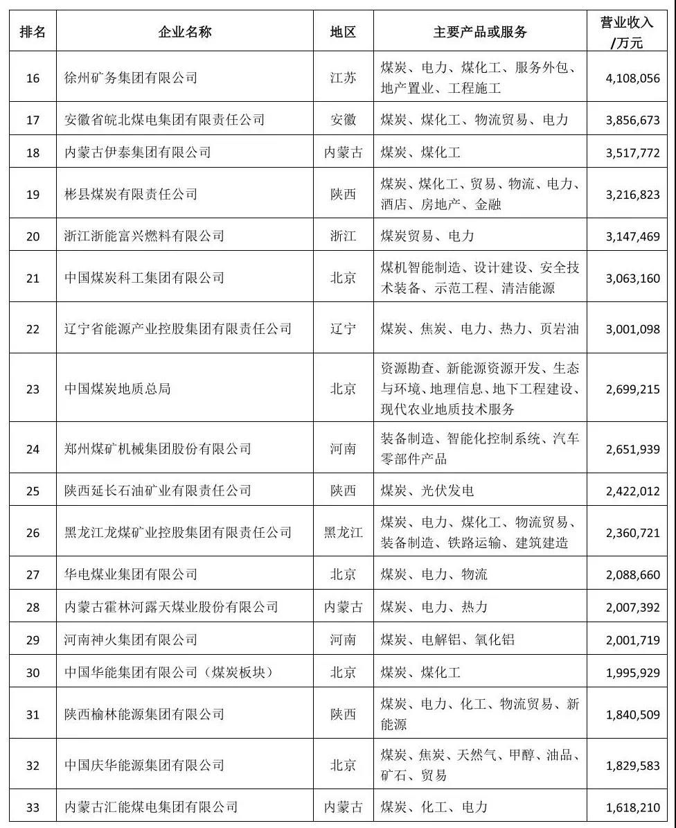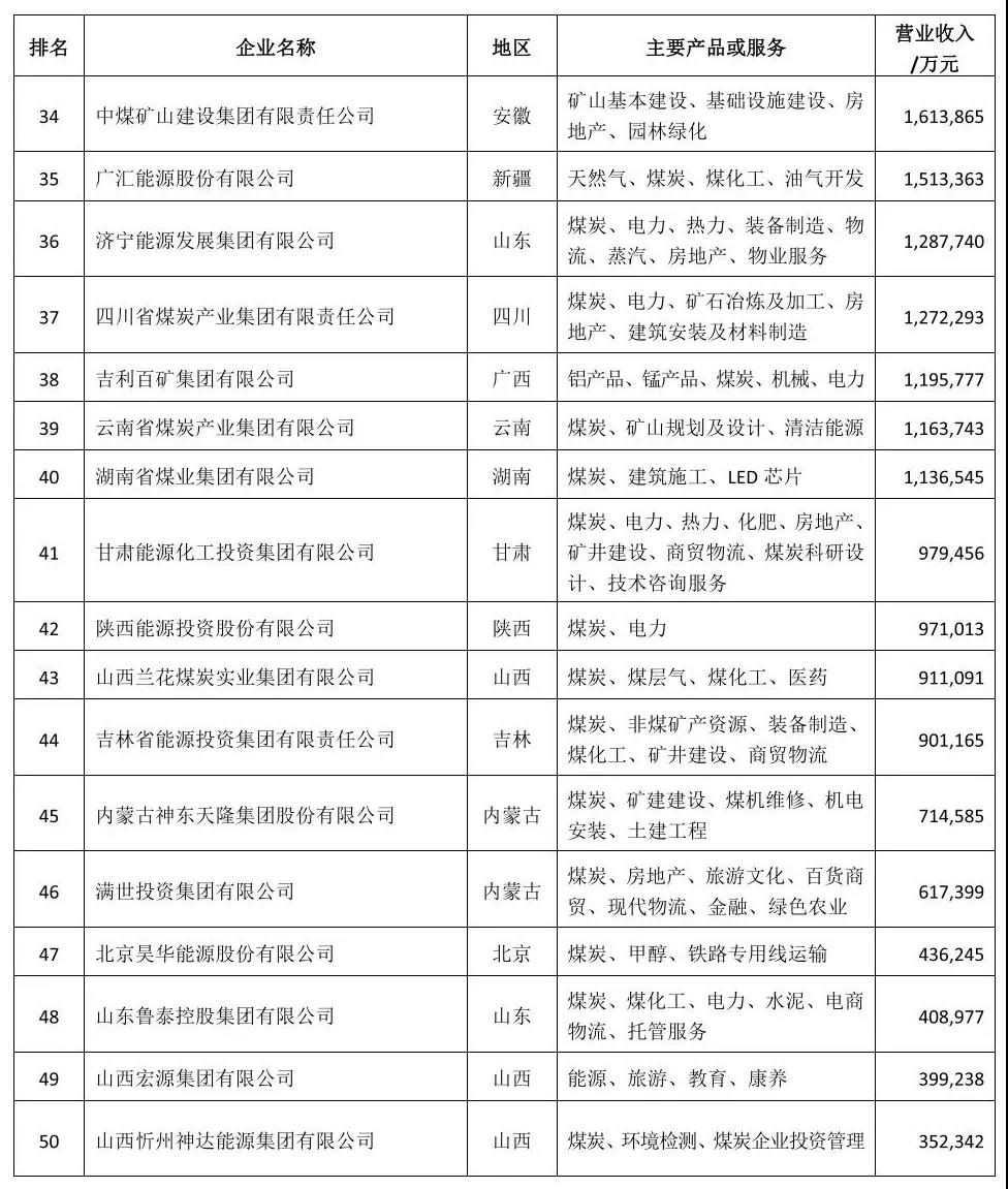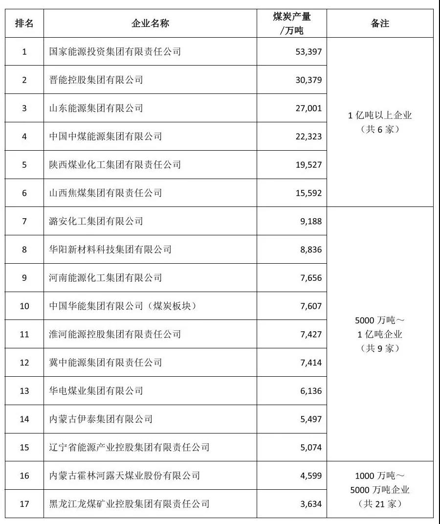 最新!中國煤企50強、煤炭產量千萬噸級以上企業名單發布
