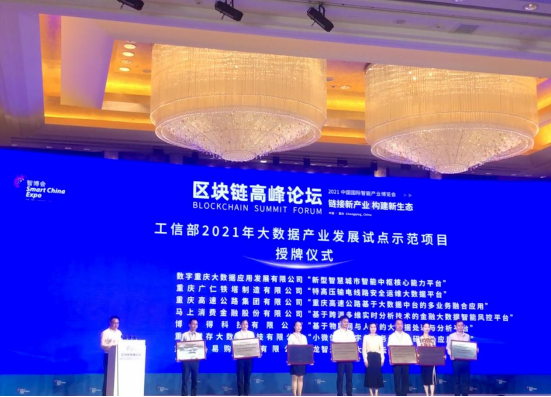 論壇上,重慶市大數(shù)據(jù)發(fā)展局黨組書記、局長代小紅為“龍智造工業(yè)大數(shù)據(jù)云服務(wù)平臺(tái)”、“新型智慧城市智能中樞核心能力平臺(tái)”等重慶市7個(gè)入選工信部2021年大數(shù)據(jù)產(chǎn)業(yè)發(fā)展試點(diǎn)示范項(xiàng)目授牌。代局長高度認(rèn)可龍易購在領(lǐng)域的應(yīng)用成績,龍易購將作為大數(shù)據(jù)和區(qū)塊鏈領(lǐng)域重點(diǎn)培育對象。