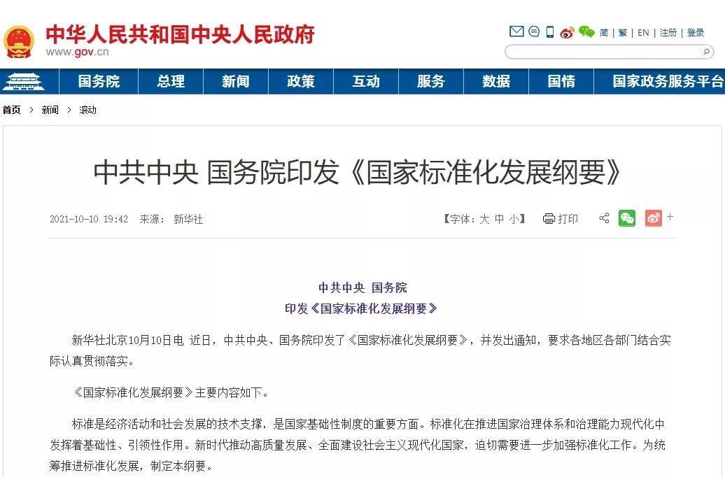 中共中央、國務(wù)院日前印發(fā)《國家標準化發(fā)展綱要》(以下簡稱《綱要》),為未來15年我國標準化發(fā)展設(shè)定目標和藍圖。這是我國標準化領(lǐng)域第一個國家層面制定的發(fā)展綱要。
