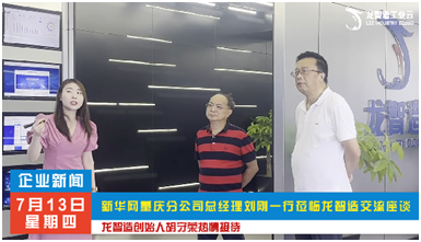 2023-077月13日,新華網重慶分公司總經理劉剛、營銷總監牟思含、行業總監范婷、資深編輯朱俊潔等一行蒞臨重慶龍智造互聯網科技有限公司,就合作模式探討、產品合作共建、品牌策劃宣傳等問題進行交流座談,龍智造創始人胡守