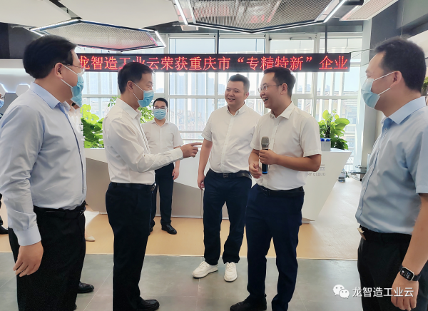 2022-082022年7月27日下午,重慶市經(jīng)濟及信息化委員會交流合作處副處長劉冉,墊江高新區(qū)管委會副主任劉劍梅、新材料招商組主任賀宇等領(lǐng)導(dǎo)一行蒞臨重慶龍智造互聯(lián)網(wǎng)科技有限公司(以下簡稱“龍智造”)交流考察,探討“工業(yè)
