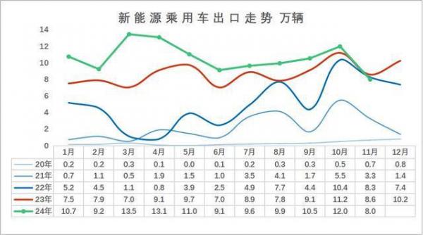 2024-1212月9日,乘聯會發布的數據顯示,11月全國新能源乘用車市場零售126.8萬輛,同比大幅增長50.5%;今年1-11月累計零售959.4萬輛,同比增長41.2%。 乘聯會秘書長崔東樹認為,進入四季度以來,乘用車銷量持續走強,隨著本輪汽車報廢更新和以舊換新政策進入倒計時,今年12月車市有望迎來“翹尾行情”。