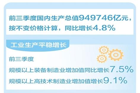 2024-1010月18日,國務院新聞辦公室舉行新聞發布會,國家統計局副局長盛來運介紹了前三季度我國經濟運行情況。初步核算,前三季度國內生產總值949746億元,按不變價格計算,同比增長4.8%;9月份,多數生產需求指標好轉,市場預期改善,推動經濟回升向好的積極因素累積增多。
