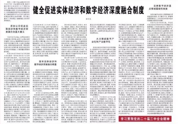 2024-08黨的二十屆三中全會(huì)通過(guò)的《中共中央關(guān)于進(jìn)一步全面深化改革、推進(jìn)中國(guó)式現(xiàn)代化的決定》(以下簡(jiǎn)稱《決定》),提出健全促進(jìn)實(shí)體經(jīng)濟(jì)和數(shù)字經(jīng)濟(jì)深度融合制度,對(duì)加快推進(jìn)新型工業(yè)化、加快構(gòu)建促進(jìn)數(shù)字經(jīng)濟(jì)發(fā)展體制機(jī)制、完善促進(jìn)數(shù)字產(chǎn)業(yè)化和產(chǎn)業(yè)數(shù)字化政策體系等作出新的部署。我們要認(rèn)真學(xué)習(xí)、深刻領(lǐng)會(huì)、準(zhǔn)確把握,切實(shí)抓好貫徹落實(shí)。